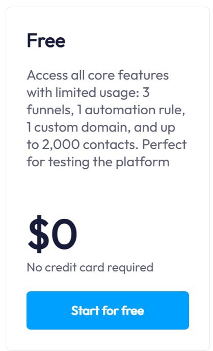 Yes! Unlike other platforms that trick you with a 14-day trial, our Free Plan has no expiration date. You can host 2,000 contacts, build 3 funnels, and send unlimited emails without ever entering a credit card. Itβs the perfect way to build your business to profitability before spending a single cent.