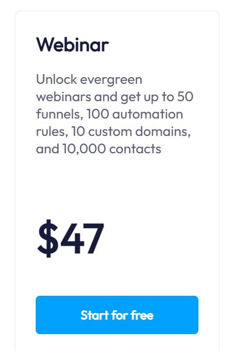 Webinar Plan: Just $39/mo (billed annually) β Includes Evergreen Webinars + 10 Custom Domains.